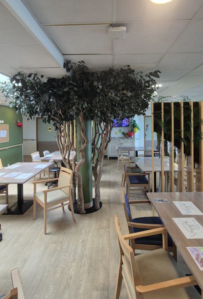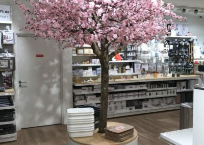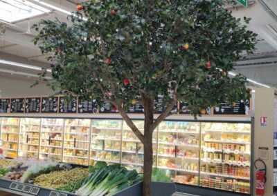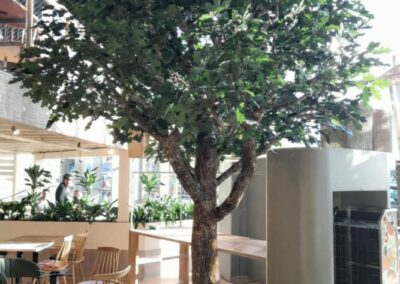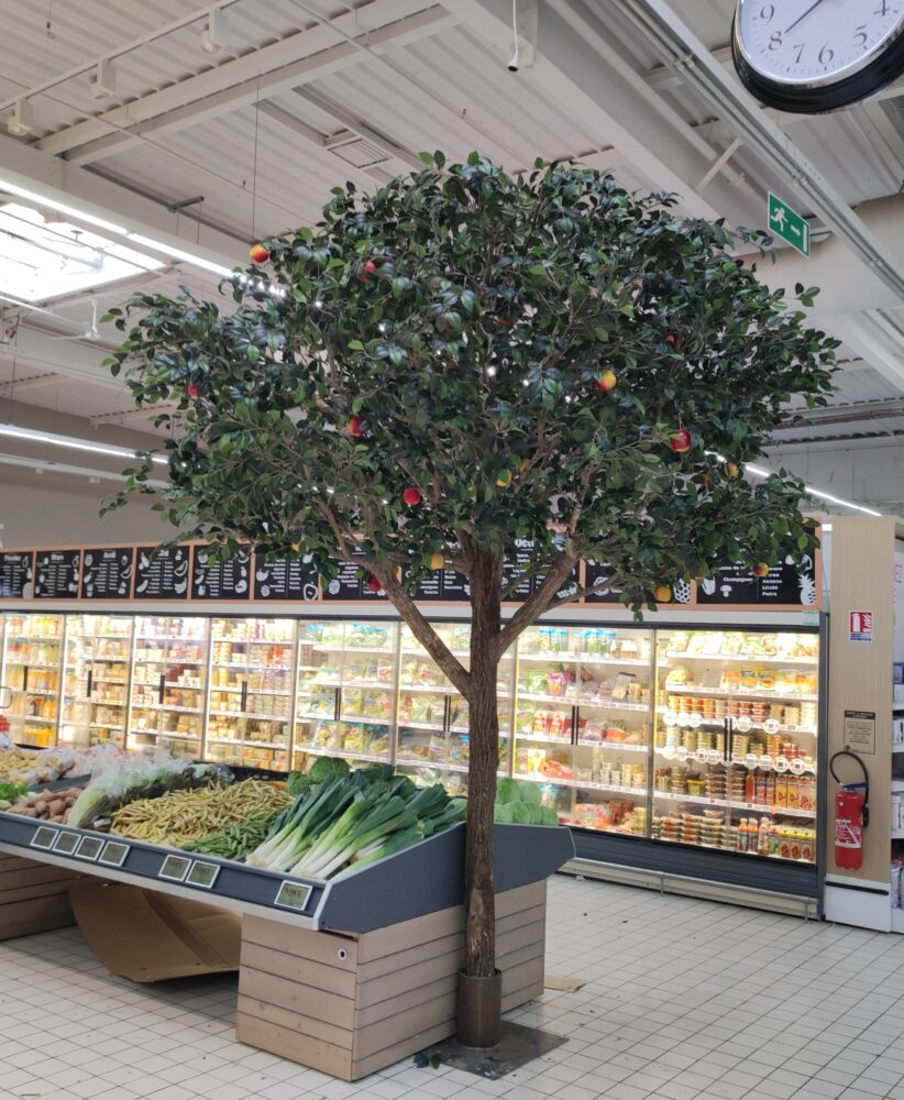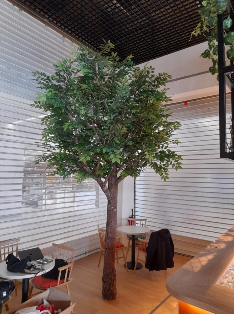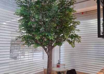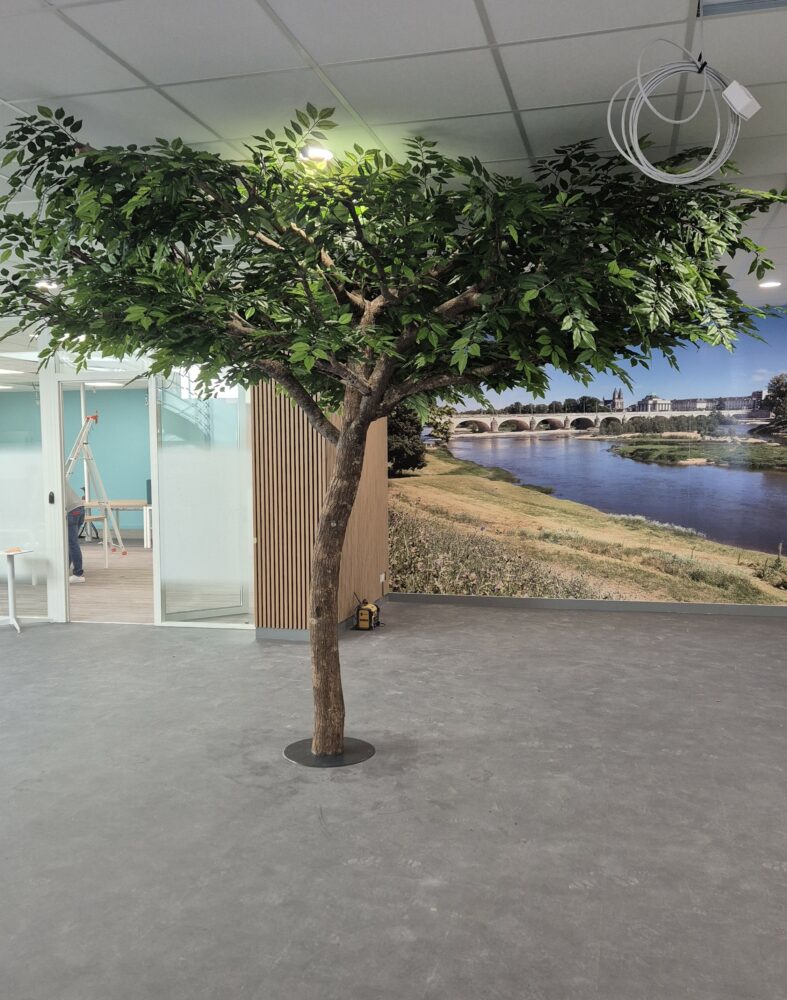 Fabriqués sur mesure à notre atelier, nos arbres sont réalisés avec des troncs et des branches naturels et du feuillage artificiel.