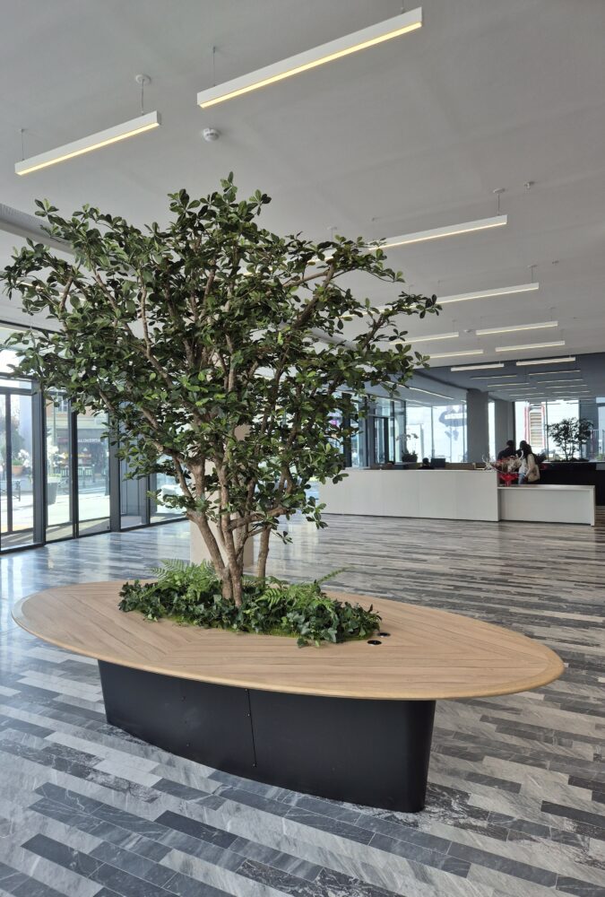 Le choix important d’essences d’arbres et les hauteurs qui peuvent aller jusqu’à 6 mètres offrent de multiples possibilités pour agrémenter une salle d’attente, valoriser un accueil ou végétaliser une galerie marchande.